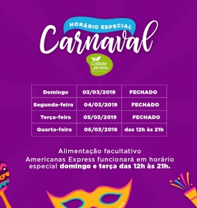 Horário especial carnaval 2019 Shopping Cidade Jardim