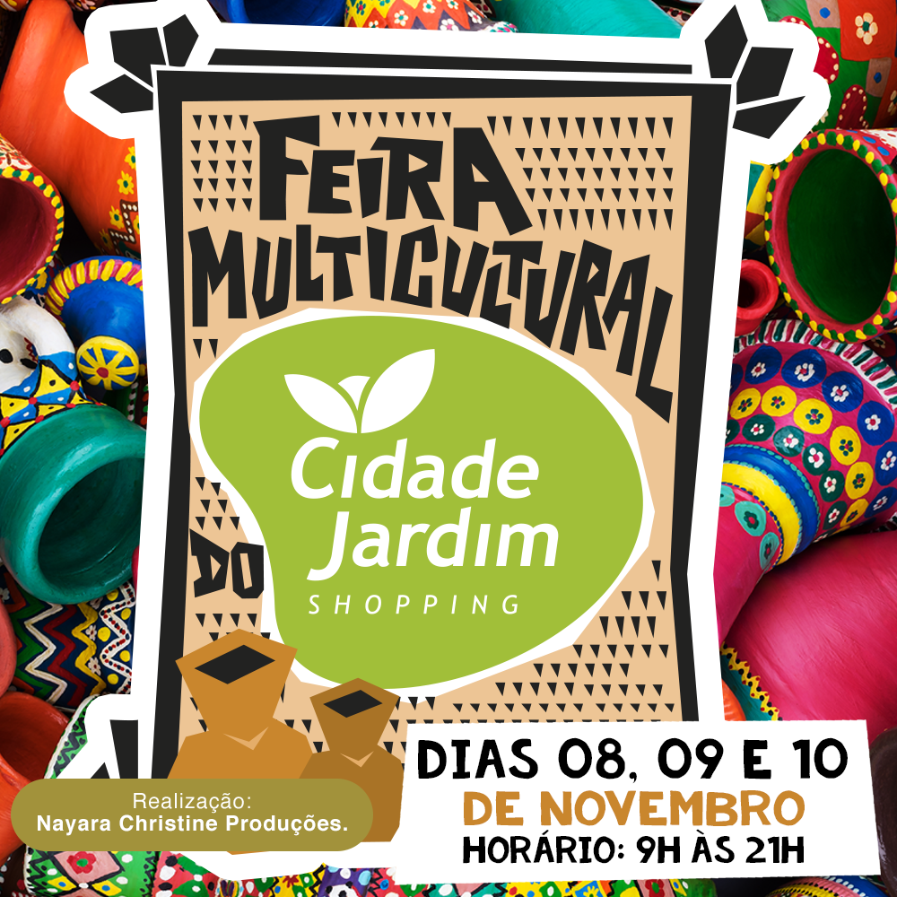 O Shopping Cidade Jardim organiza mensalmente uma vasta programação cultural destinada ao público. Como já virou tradição, todo inicio de mês acontece a Feira Multicultural para agradar quem quer vivenciar três dias com muita arte e cultura. Nestes dias 08.09 e 10 de novembro, acontece a 11ª edição do projeto que oferta um mix de expositores exibindo o melhor do artesanato local.
