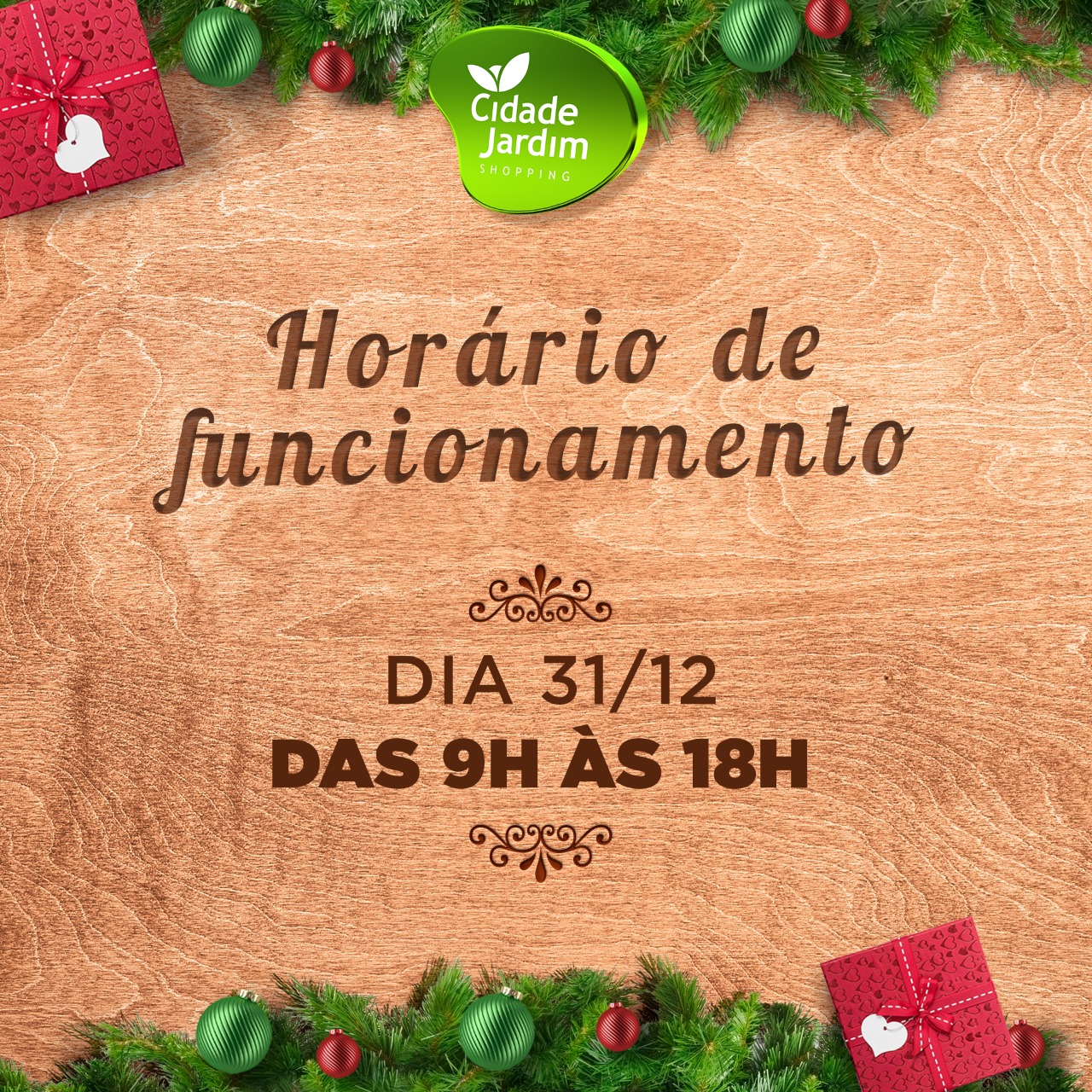Confira nossos horário deste dia 31/12 e realize as suas compras de final de ano no Cidade Jardim!