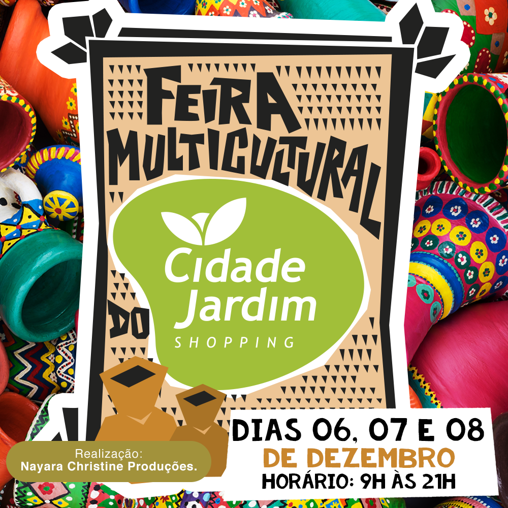 O Shopping Cidade Jardim organiza mensalmente uma vasta programação cultural destinada ao público. Como já virou tradição, todo inicio de mês acontece a Feira Multicultural para agradar quem quer vivenciar três dias com muita arte e cultura. Dos dias 06 a 08 de de dezembro acontece a última edição do projeto que oferta um mix de expositores exibindo o melhor do artesanato local.
